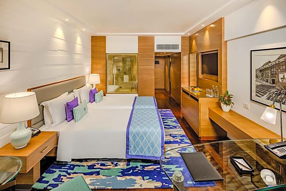Enjoying views of the Mandovi River or Altinho Hill, large air-conditioned room features a 42-inch Smart TV, and a fruit basket. Bathroom has a separate bathtub and a walk-in rainshower, as well as comfortable bathrobes.